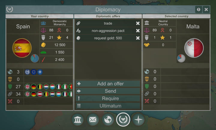 4、点击“Play As”进入游戏后,即可开始掌控国家,实施自己的战略。