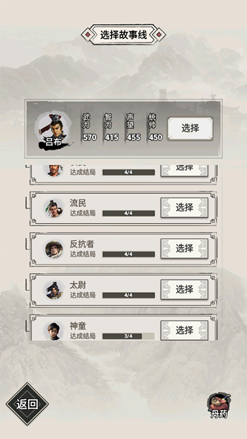1、游戏的操作方式极为简洁,玩家从吕布的故事线开局,开启重生之旅。