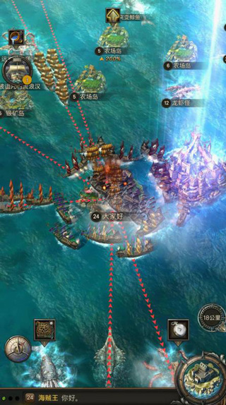 5、与海军舰队战斗,保卫岛屿繁荣强大,并与其他海盗合作,保护资源和宝藏。
