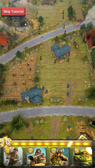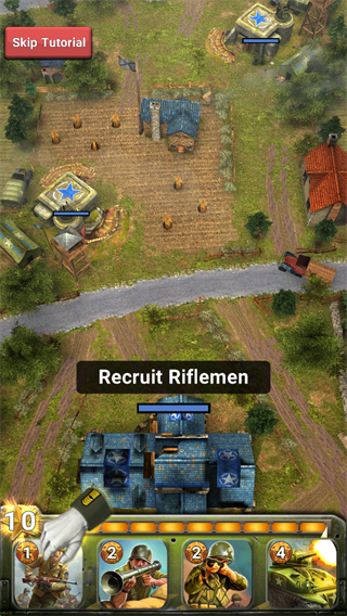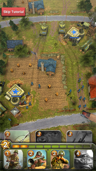 1、游戏开始可以通过点击屏幕下方的相应的“兵种卡牌”。