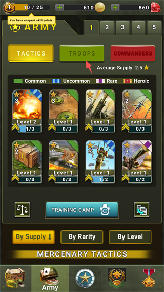 8、当然,兵种也不例外,可以直接升级,提升战力。