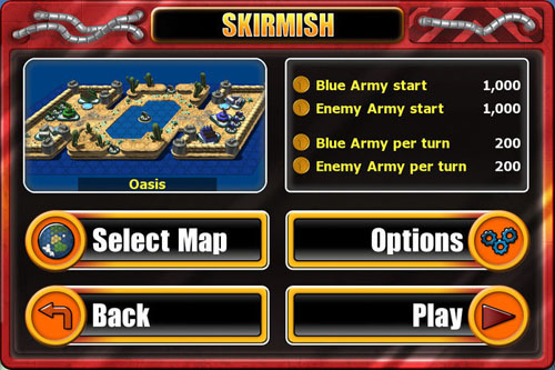 1、在游戏中,你要选择红蓝两军的一方进行对垒,游戏中拥有可以生产战斗单位的基地,每个单位的战斗力遵循兵种相克原理。