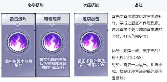 2、技能选择。前期重点主力技能学习冰弹术&雷击术,火球术可作为伤害补充,战车可用于减速拖延怪物抵达城墙的时间,不做主攻技能,火龙弹前期不推荐,8级以后可考虑风能波,具备更多群攻技能;