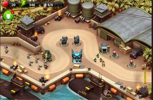 卫兵塔在关卡中起到抵挡伤害放置敌人前进的作用,让机枪和大炮可以尽可能多些输出,但还有个作用就是配合大兵;只有大兵击杀敌人后会获得金币,但自身血量成长并不是很高,尤其前期很容易被敌人击杀,所以我们把大兵放置在卫兵后面,根据地图上敌人聚集多的地方,把大兵调过去,这样可以多获得金币