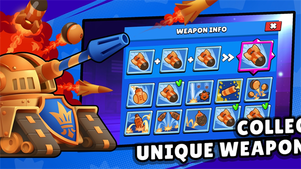 v1.3.4坦克之王是一款Q版卡通画风的回合制射击游戏,游戏中提供了数量繁多的坦克种类,每一个坦克都有其独特的武器系统,选择你要出战的坦克!运用坦克独特的机制,制定不同的策略,打他们一个出其不意!游戏夸张的画风提供了卓越的视觉体验!喜欢的玩家快来下载试试吧!
