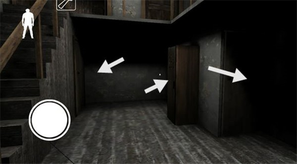 下楼梯后左边的地板上有一根黑线,从上面走过铃铛会响,需要注意。楼梯旁的柜子里可以躲,柜子对面有一个门,里面可能刷东西。柜子旁边有一个门通向地下室(由于画面较暗
