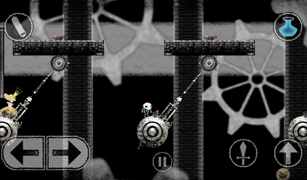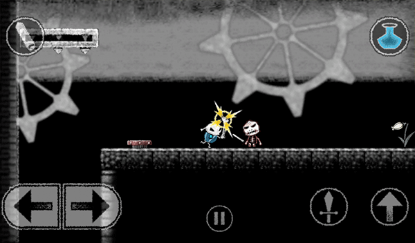 1、左侧按键控制小骷髅进行左右移动,右侧控制攻击以及跳跃;