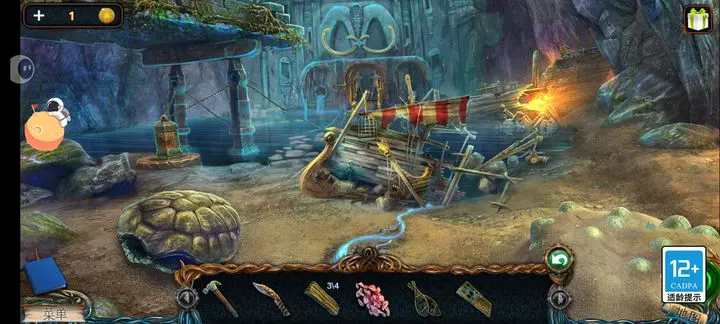 3、然后点击左边,拿到一个木槌和一块地图碎片。