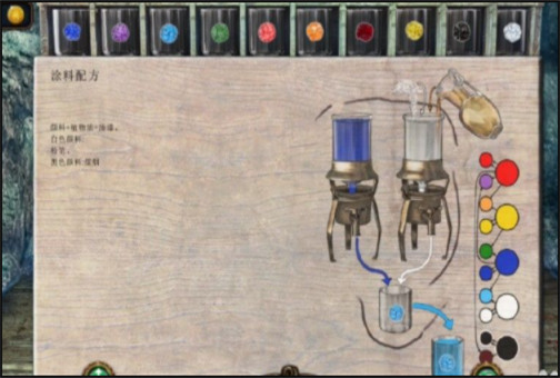 8、配好所有颜色后,点击上面一行烧瓶,可以拿到画具套餐。