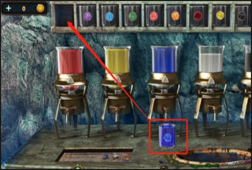 5、第一个烧瓶是蓝色,因为蓝色本来就有了,所以只需要在蓝色的颜料瓶下面旋动两次按钮就可以了。配好色后,将烧瓶移回去,然后再换一个烧瓶。