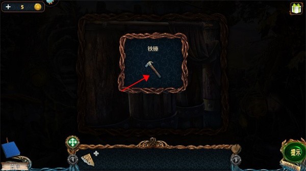 7、得到铁锤后,点开手印那块布,先用铁锤拿到钉子。