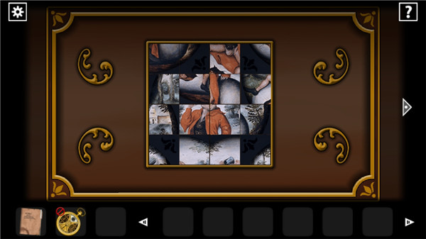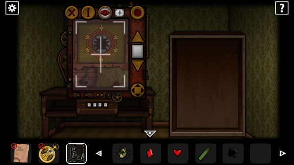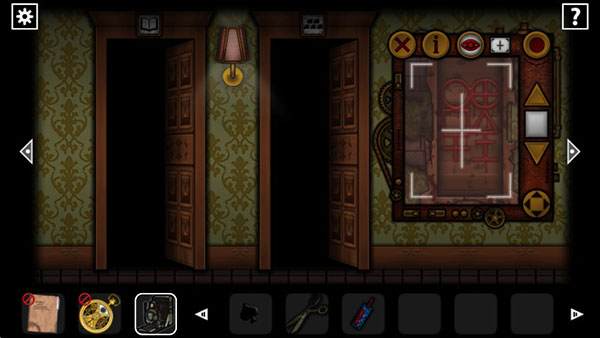 12、这时返回二图的图书馆,右图中点中间的暗门,把手上的书全塞进去了,然后根据纸条上的图案把书的顺序排好,下面秘密通道开启,进去里面是家族所有人的照片,能在右边获得里世界照相机(答应我不要看各个角落的里世界),用照相机看墙上的密码画,能得到真正的保险箱密码图案,打开保险箱获得剪刀和黑桃。