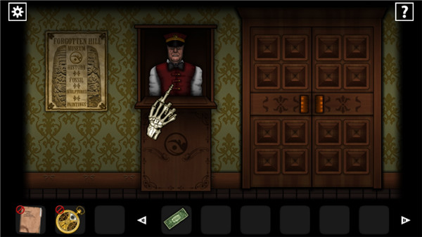 1、过完教程进门,进去后门会自动关上,想出去时候会有个保安跳出来说需要出门券才能出去(一看就不是什么善茬),左边墙点纸张收集,右边是个拼图,能随意移动所以很简单。