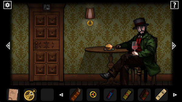 10、回到之前二图的收藏房,在右下角老鼠洞旁边放上捕鼠器和奶酪,退出房间,听见老鼠的惨叫,再进去可以拿到死老鼠,然后来到餐厅把老鼠放进柜顶开瓶器右边的盘子里可以得到死老鼠的菜肴,到右边放进烤箱里,根据右边柜子书上的提示制作,听见叮一声就烤好了,打开烤箱获得松脆小吃(也可以点击右上的问号提示通过),把小吃拿给那个人了,趁他喝下酒后沉睡的时机拿走他手上的齿轮和桌上的书,把齿轮放进金表里。