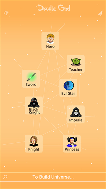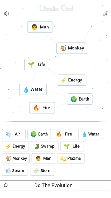 帝是西方神话传说中无所不能的存在,在多数西方人的信仰里,上帝创造了世界,创造了人,创造了一切。《上帝涂鸦》是基于神话故事对上帝的描绘,而创作的一款充满想象力和创造力的益智游戏。初次看到《涂鸦上帝闪电》,可不要把它当做是一个绘画游戏。游戏玩法可谓充满了创意,上帝创造了风、火、水、土四中魔法元素。土和火会产生岩浆,岩浆和水会产生岩石和水蒸汽,土和风又会创造尘土,水和尘土能产生沼泽,越来越多的新元素产生了。接着细菌,植物,动物,人也会被一一创造出来。