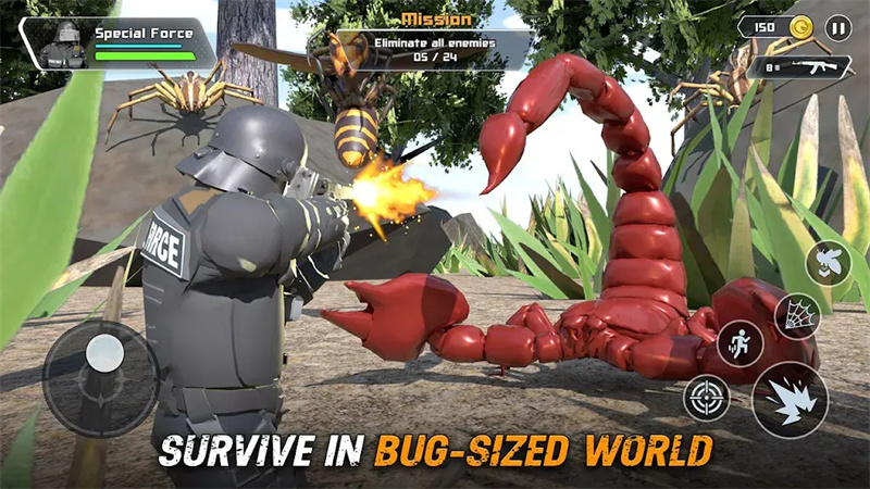 3、对抗巨型昆虫时,利用环境陷阱如胶水池、风扇气流进行智取,避免正面硬拼,发挥策略优势。