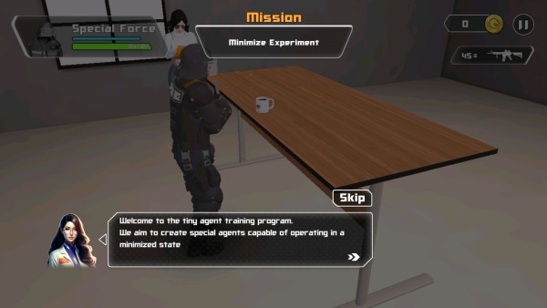 小小警察生存之旅是一款冒险生存解谜类游戏。游戏运用了先进的3D引擎画质,政府的科学家研制出了一款缩小药丸可以将人变得想苍蝇般大小,主角意外被选中吃下变小药丸果然身体慢慢缩小成苍蝇般大小。之后主角就被派去潜入各种危险的场景中调查案子,偷偷拍下犯罪证据传给总部。