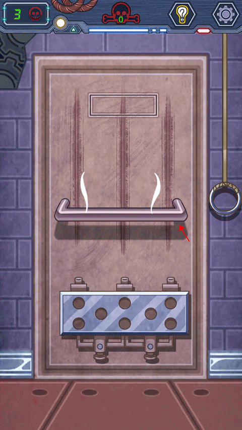 第3关:拉动拉环,等门把手不冒烟了点击门把手即可。
