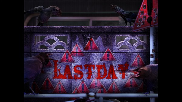 4、出现“LASTDAY”请玩家注意,游戏来到尾声,是世界崩坏最严重的一天,恐怖之物到处横行,如果玩家前几天玩的非常辛苦不推荐继续游玩,建议马上推出游戏。继续游玩的话请做好心理准备。