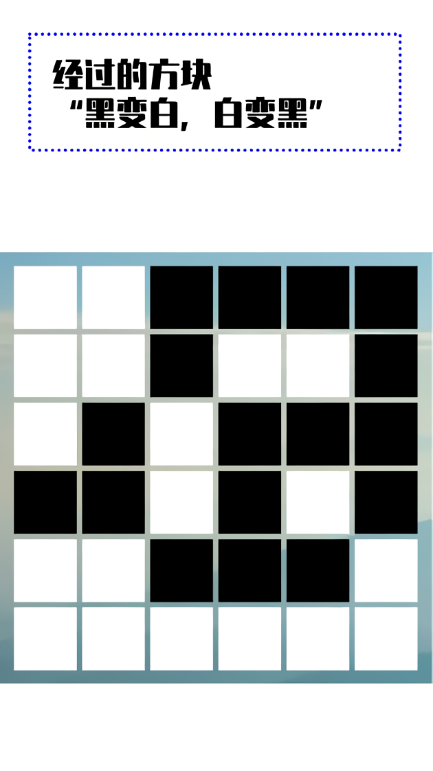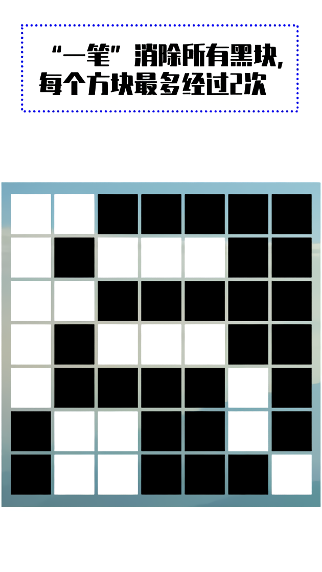 1、《一笔消》结合 “一笔画”和 “消除” ,将两者合为一体,只需要一笔消除所有黑色方块即可过关。
