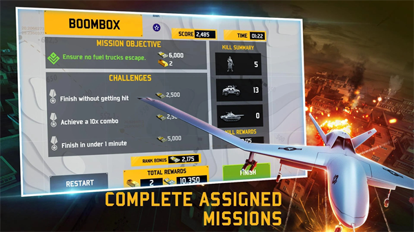 4、玩家将控制无人机在天空翱翔,你的敌人将无法发现你的存在,从而可以使你精确打击目标。