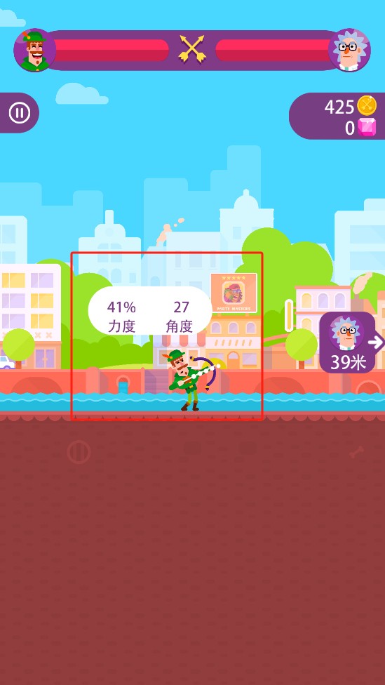2、玩家通过滑动屏幕可以调节弓箭的角度和力度
