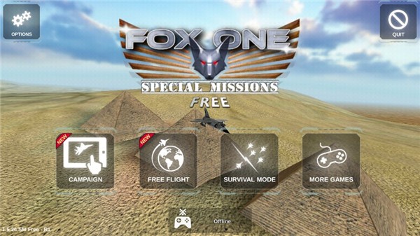 狐狸一号特殊任务是一款非常好玩刺激采用了真实的3D引擎制作的飞行冒险射击类游戏。在”狐狸一号特殊任务“这款游戏中玩家将化身成为一名技术超群的飞机驾驶员,在游戏中玩家可以驾驶着各种各样的飞机以惊人的速度在天空中翱翔。在云海中穿梭寻找入侵飞行领土的敌人,利用你飞机上装载的武器系统将对方击毁。