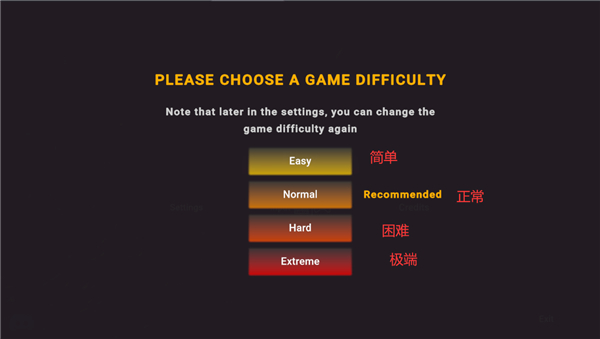 1、进入游戏选择英文字体后来到界面选择游玩难度。