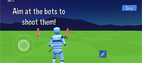 5、玩家需要移动视角,把准心瞄准敌人角色就会自动开枪;