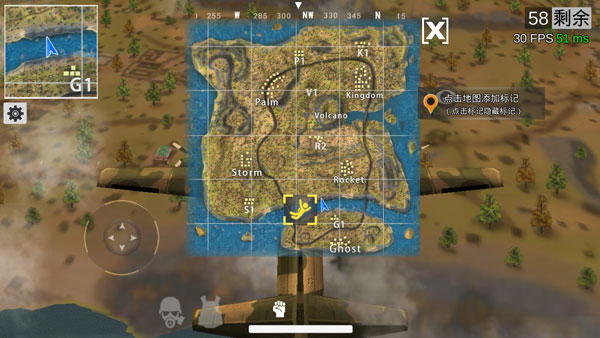 游戏中我们还需要随时点开左上角的地图,查看安全区在哪里,随着安全区不断缩小,我们要一直朝着安全区前行,不能在外面的危险区域,否者会被毒死。