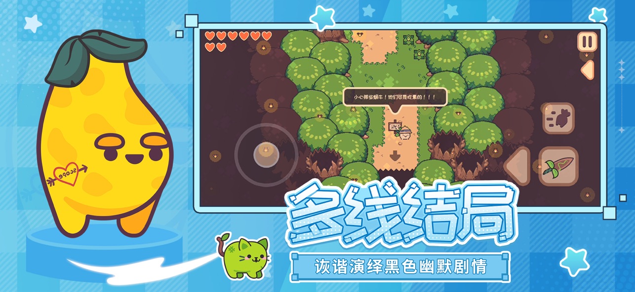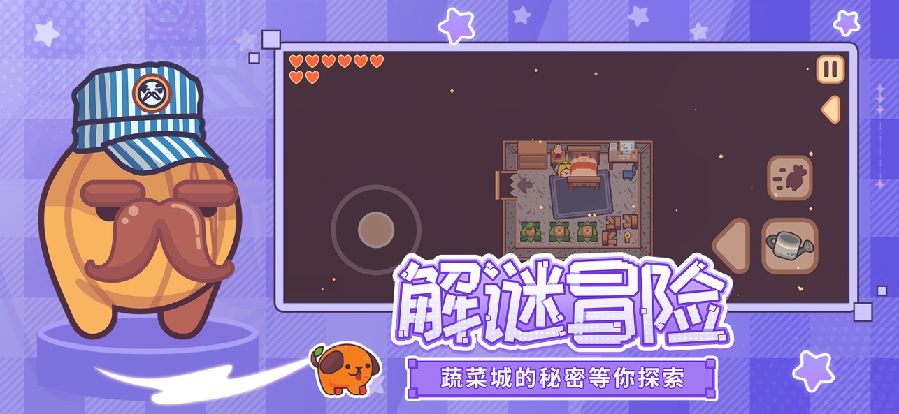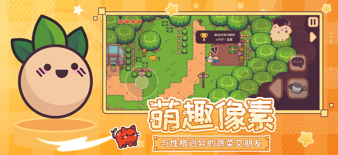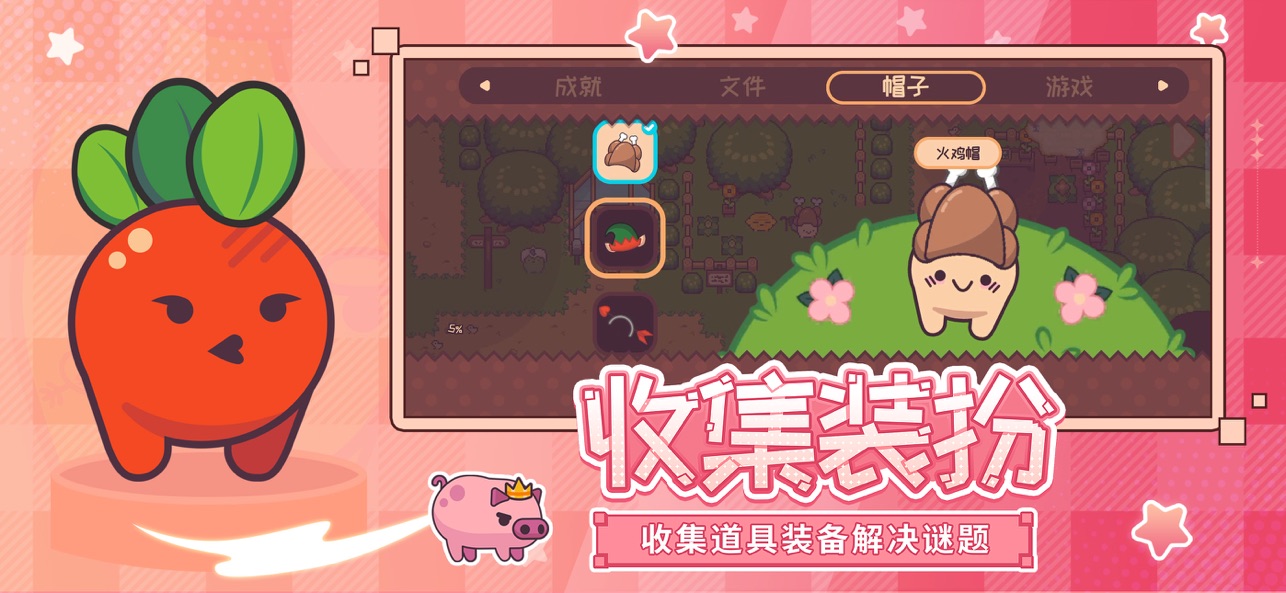 大头菜菜历险记是一款由steam移植的趣味解谜游戏,我们将会跟随游戏的剧情,来到全新的蔬菜世界冒险和探险。作为一颗可爱的大头菜,也会为房租而烦恼,因为欠下了巨额的房租,你被驱逐出去了。由此,你开始了向洋葱市长还债的苦逼的旅程。游戏内采用的是像素的画风,玩法轻松治愈,慢节奏的游戏体验能够治愈的你的身心。