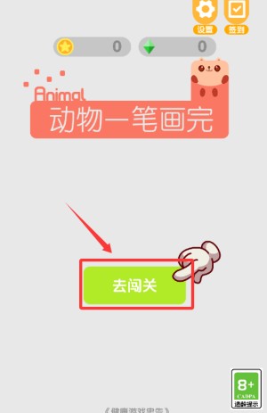 3、点击红框去闯关按钮,开始动物一笔画挑战。