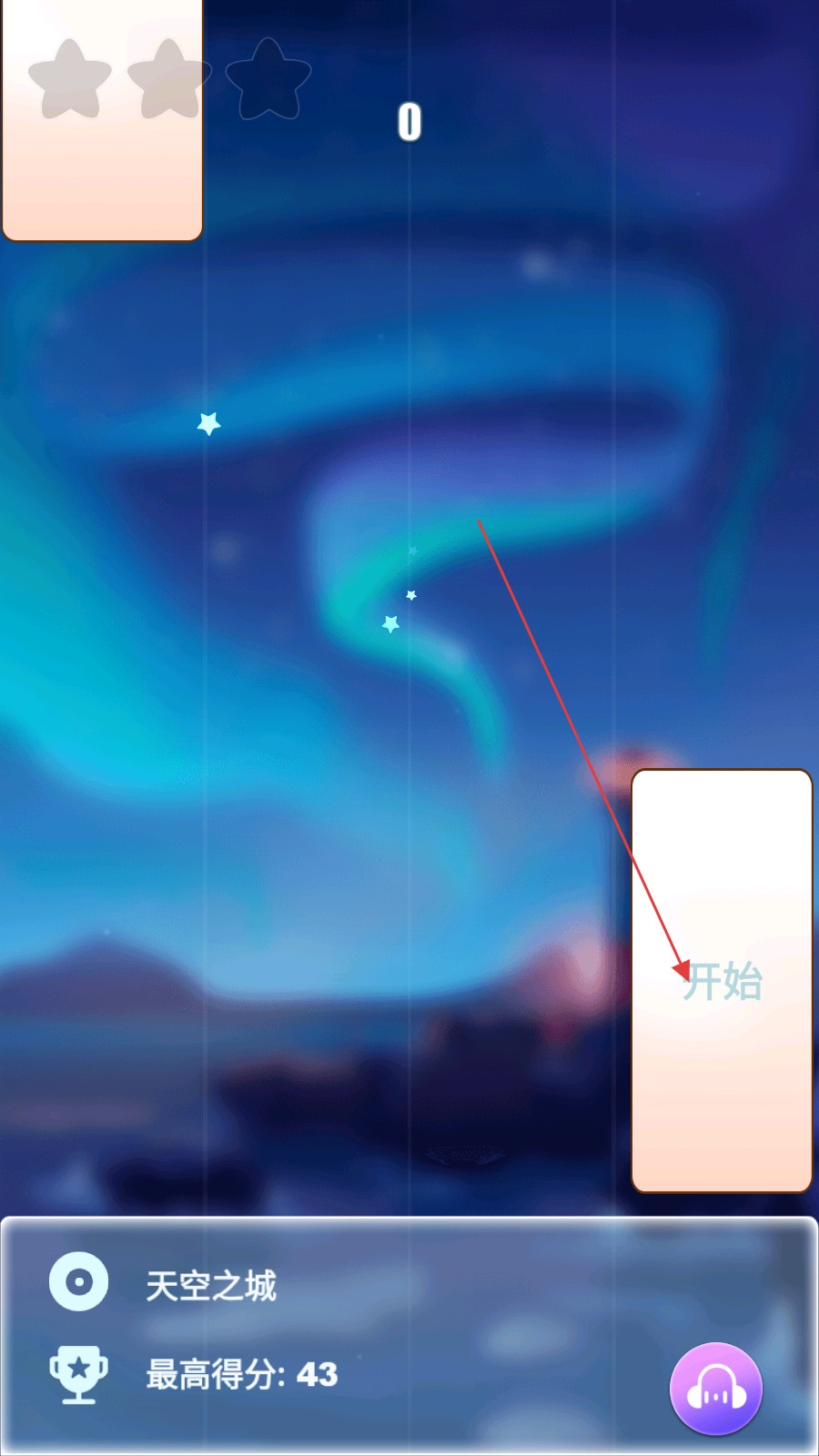 1、在歌曲选择界面,选择天空之城,点击【开始】进入游戏。