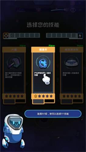 3、玩家们每升一级就可以选择一个技能,每一个技能都有属于自己的特性,游戏里试不试还会有宝箱掉落,捡到宝箱增强实力;