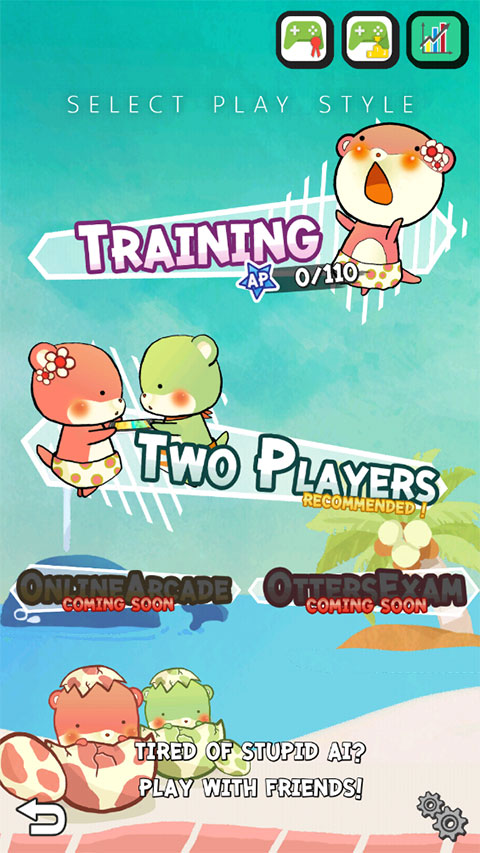 Duel Otters是一款双人对战小游戏,游戏画面为卡通风格,可爱有趣,简单容易上手,适合自己娱乐和朋友对战。游戏中有很多小游戏,而每次对战都会从这些里面随机挑选几款,然后让玩家对战,胜局多的一方则可以获得最终的胜利。而且很方便的一点是,两个人可以在同一部手机上游玩,互动起来也更加亲密、有趣。感兴趣的玩家欢迎在本站下载,与朋友一起体验。