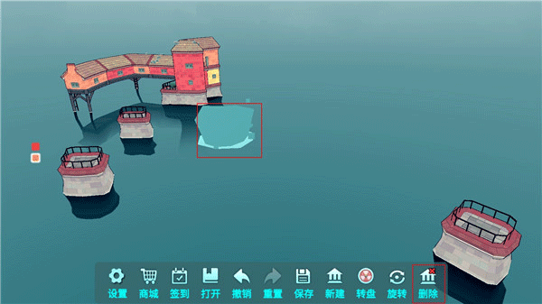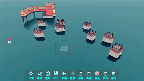 3、当水面上出现如下图标识时,玩家可以通过点击来进行水上建筑的建造。