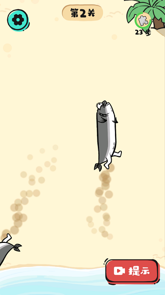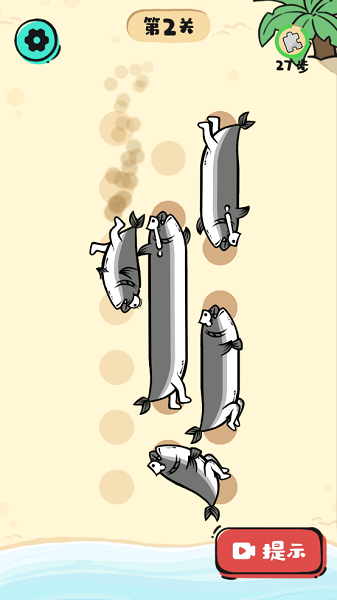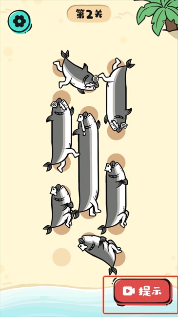 4、将所有咸鱼移开后即可进入下一关,如遇到一些较难的挑战时,可使用右下角提示
