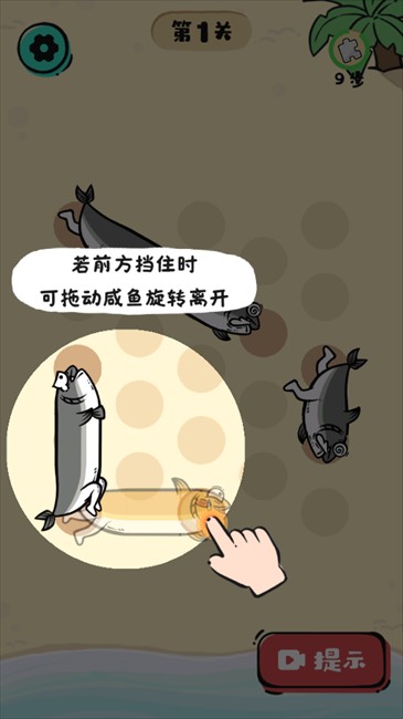 1、玩家只需通过简单的点击和拖动操作,即可控制可爱的咸鱼。