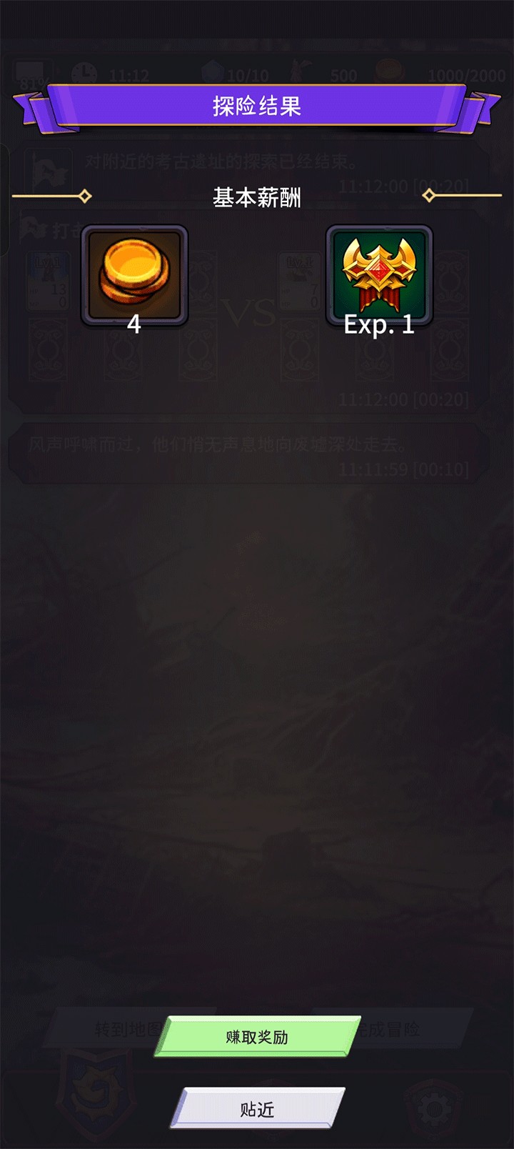1、探索将自动进行,只需暂时放置游戏,伙伴们就会带回战利品!