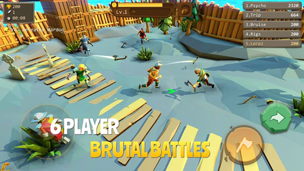v1.7.5战斧大乱斗是一款多人联机动作格斗类游戏,游戏以原始部落为背景,玩家在游戏中将化身成为一名勇士,需要在多人乱斗战场中通过一起方式让自己活到最后。游戏的操作方式非常简单,玩家只需控制角色进行移动和攻击即可开始战斗,玩家可以轻松上手这款游戏。而且游戏画质细腻,玩家将以45度上帝视角进入到游戏中,帮助玩家可以更直观的查看周围的环境。