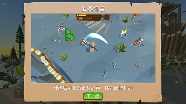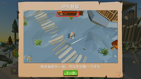 3、我们只要通过摇杆控制自己的角色面对敌人,然后点击攻击按钮丢出斧头,当斧头砸到敌人身上的时候,就可以消灭对方了。