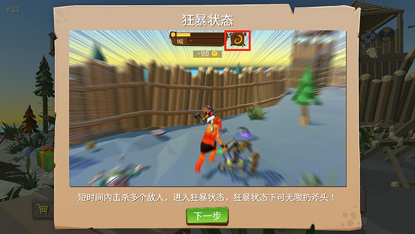 4、短时间内击杀多个敌人将会进入狂暴状态,狂暴状态下可无限扔斧头