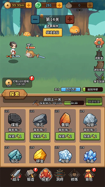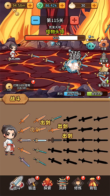 2、独特的炼剑系统,从选材、炼制到淬火,每一步都考验玩家的智慧与耐心,打造专属神剑。