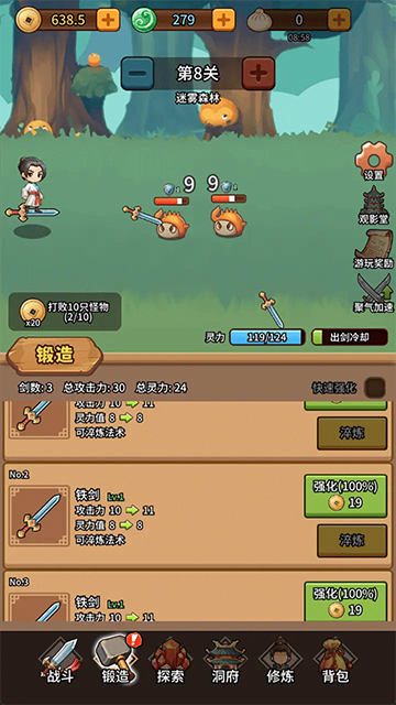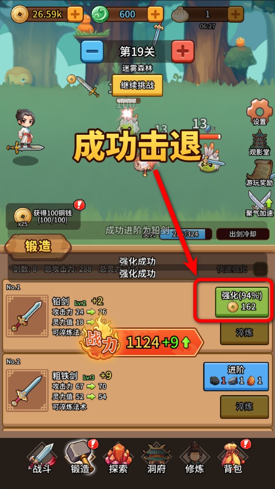2、利用铜钱对武器进行强化,能有效提升攻击力,让打怪效率成倍提升。