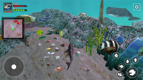 8、游戏中还有一些贝壳玩家可以控制鲨鱼靠近收取,这些贝壳可以帮助鲨鱼修建自己的家;
