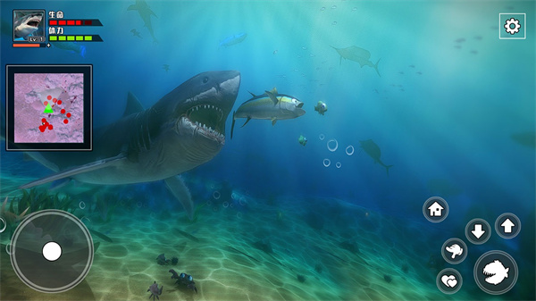 v1.0.0饥饿鲨鱼求生是一款海底生存冒险类游戏,游戏采用了3D写实的游戏画风对海底的各种动植物进行出色的还原。玩家将化身成为一只鲨鱼,需要通过不断捕食比自己小的鱼类是自己进行成长和进化。同时玩家还需要躲避其他比自己体型更大的捕食者的攻击,玩家需要不断的捕食进化,直到进化成海洋霸主,便可肆无忌惮的对海底的生物进行吃吃吃,玩法非常解压。