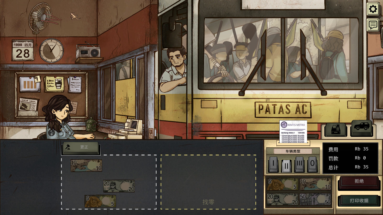 2、随着所在时代的动荡格局愈演愈烈,这份工作也不是那么好做了,从最开始的仅收费+找零,到验钞、用金属探测器探索违禁品、查证件信息、派发传单……由简入繁贯穿整个游戏,从最开始的得心应手,到后面的手忙脚乱,虽说是收费员模拟器,倒也并不无聊。