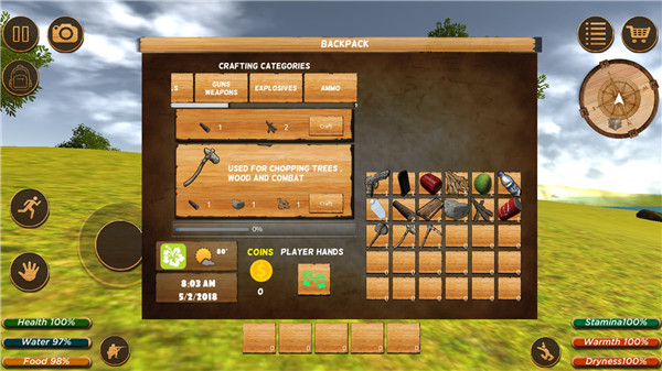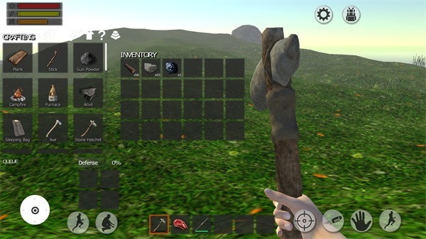 3、学习丛林工艺技能,开辟资源,建造基地和武器,为生存和防御做好准备。