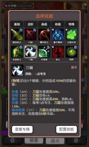 4、技能推荐标记,扫射,飞刃,刚开始就是瞄准过度就行了,前面简单自己看着搭配无限重置的可以。其他看着搭配比较好度过前期就行,加点看图只是给一些参考,具体看自己装备去选择。