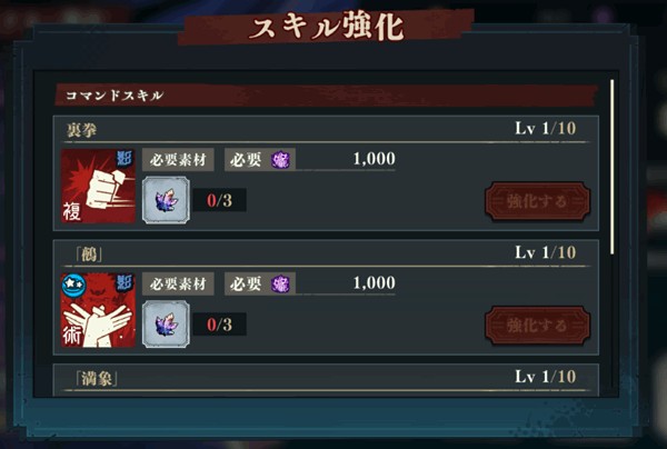 当等级和GRADE完成一定提升后,还可以通过材料来强化技能。技能升级后,不仅数值更高,部分角色技能还会附带额外效果,能让战斗表现更上一层楼。